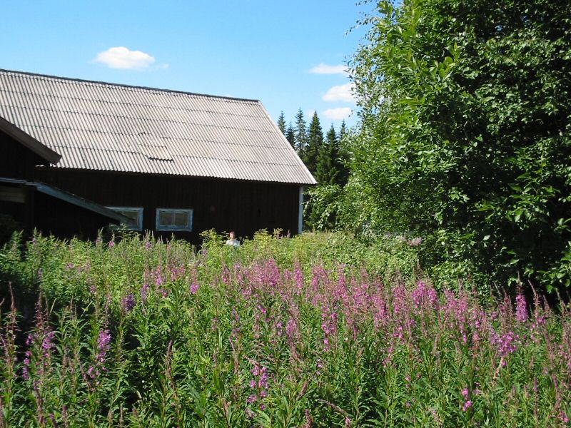 Josef trying to locate a ball in the jungle behind the barn. Many balls have seen the same fate through the years as they have been mistakenly thrown over the roof.