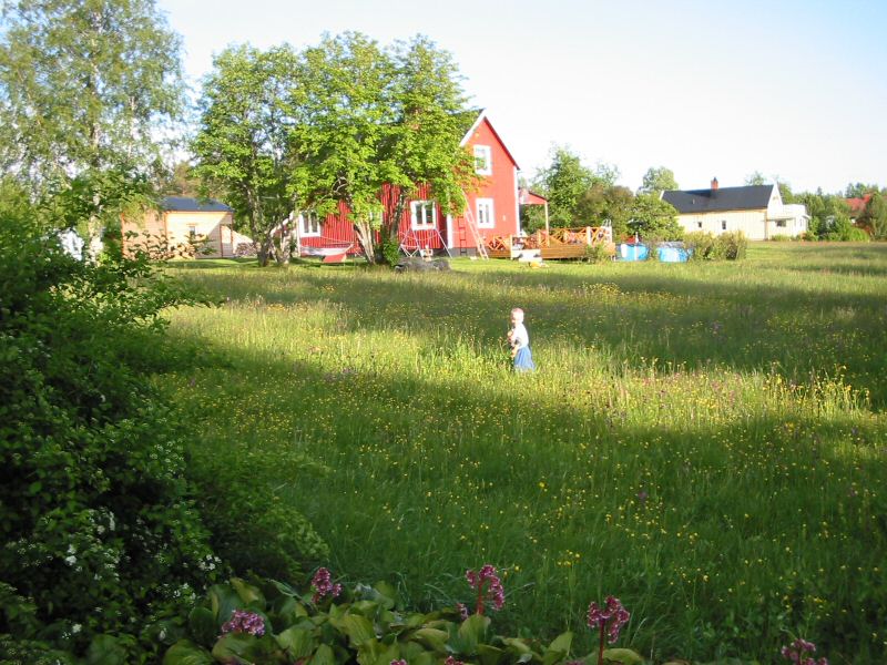 Johannes walking in the blooming summer meadow.