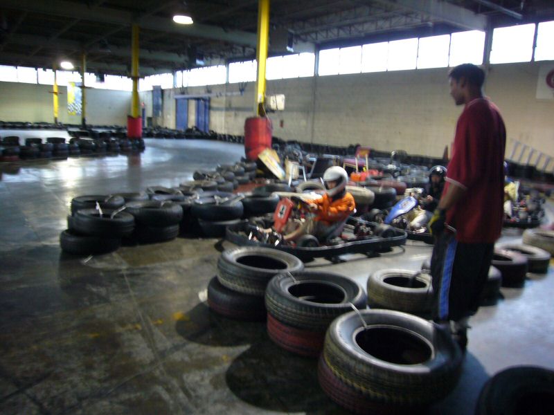The team went Go kart racing. Here Owen is ready to rock.
