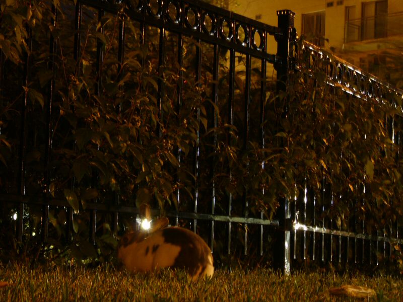 A bunny at night.