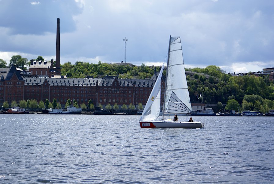 A boat passing by. Skinnarviksberget in the background.