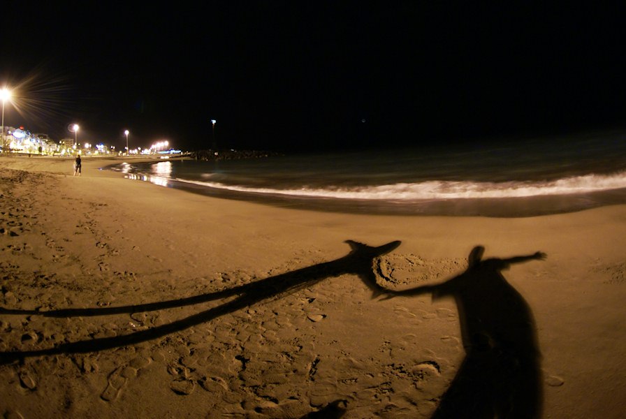 Playing with shadows. That's a heart in the sand between us.