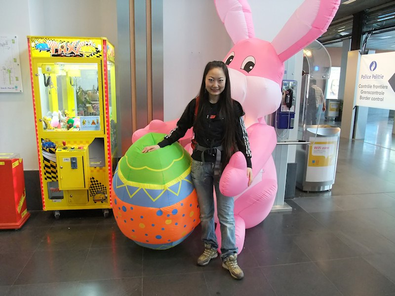 Playing with the toys at the Charleroi airport.