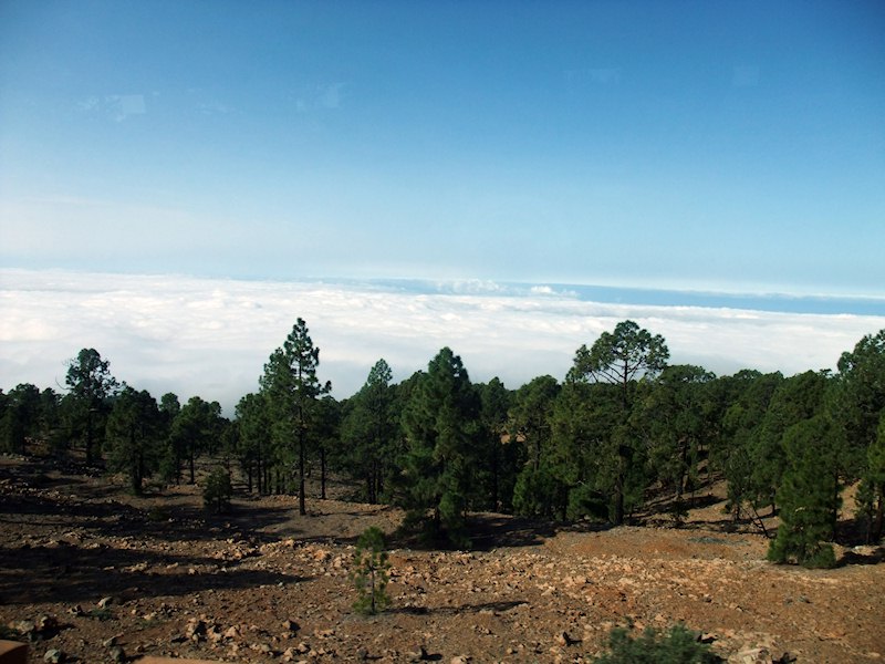 | Tenerife is a volcano island and Mount Teide is the third largest volcano in the world with its 3718m. Here we're on our way up. It was a rainy day with heavy clouds so we didn't expect much of a view, but then suddenly we got sunshine as we passed through the clouds. It was a glorious moment that felt like entering heaven. Very beautiful. The pictures don't quite do the experience justice. |  |