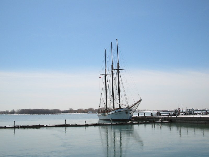 A docked ship down at the bay.