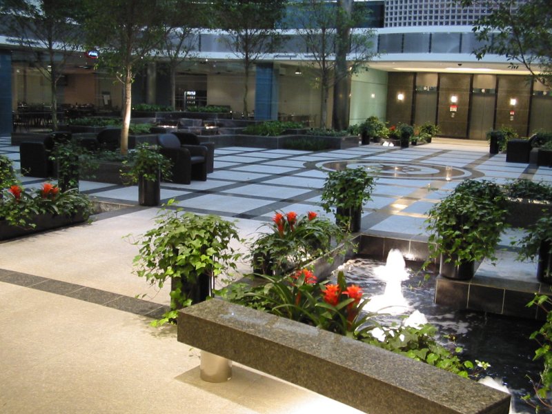 Inside ATi. I really like the main entrance hall. It's large, open and quite moodful with all this vegetation and artificial waterfalls and small fontains.