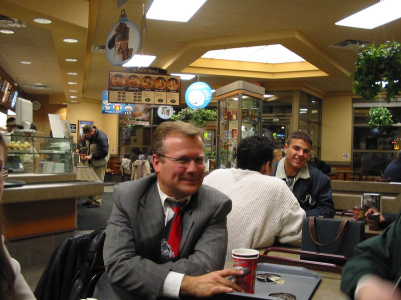 Having a cup of coffee at Tim Horton's.