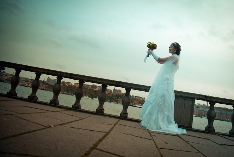 Jenny holding the bouquet.