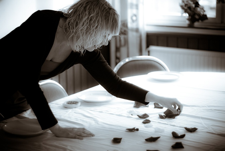 Anna decorating the tables.