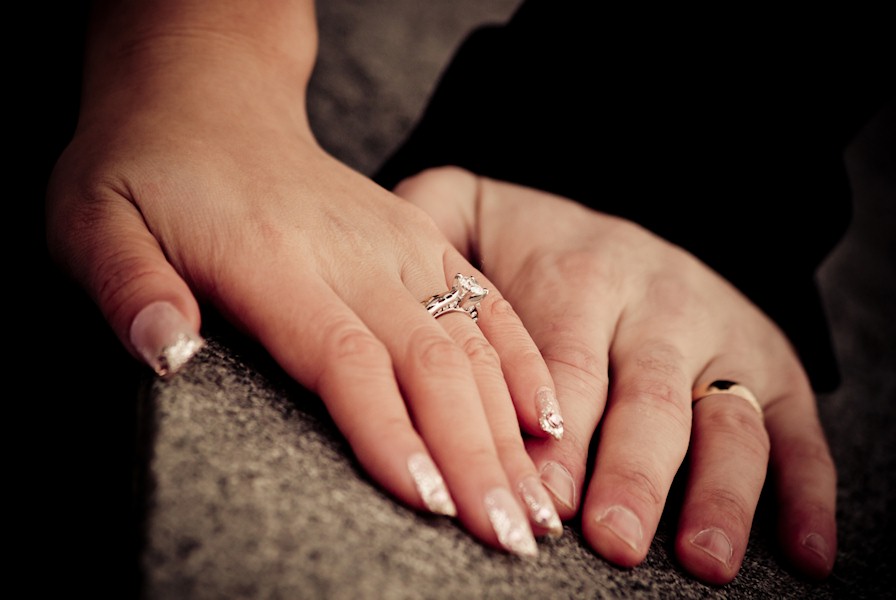 Showing off our rings. Mine is not as impressive.