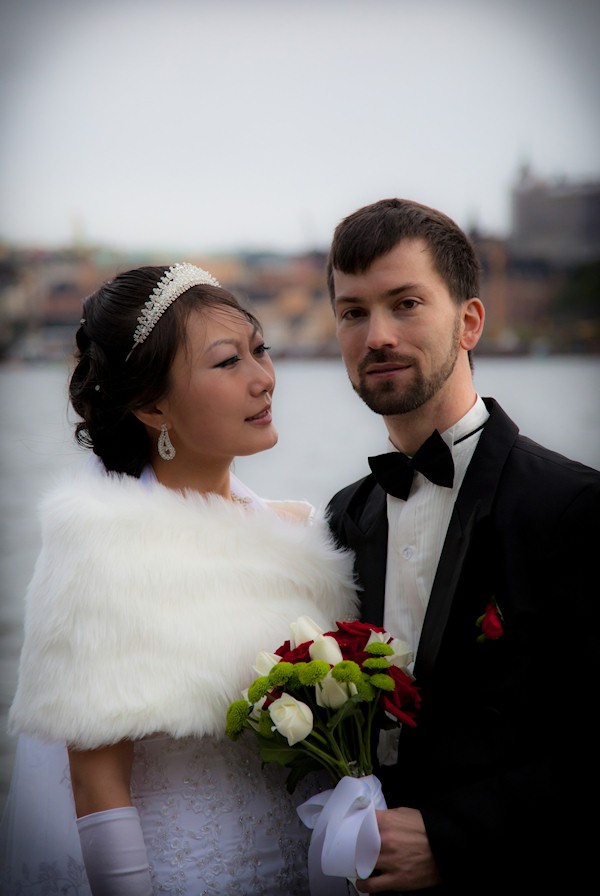 Jenny carefully examining her new husband's face.