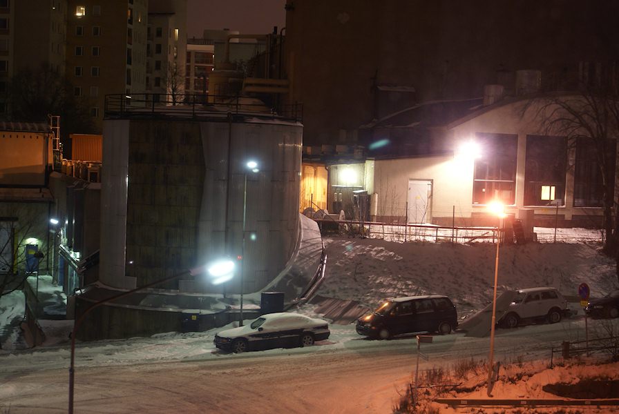 Stormy weather in Stockholm. Metal sheets tore off this cistern and fell over the cars.
