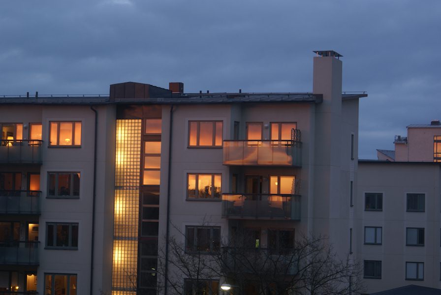 Firey reflection in the windows.