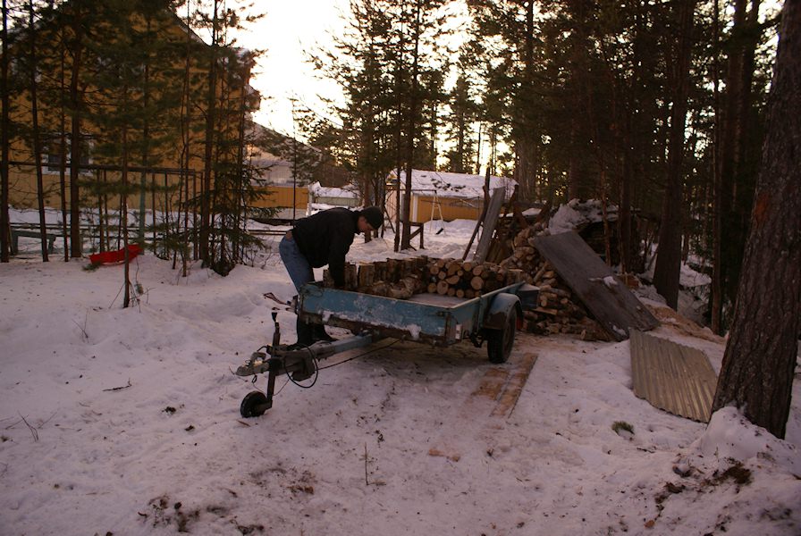 Jocke loading off some wood.