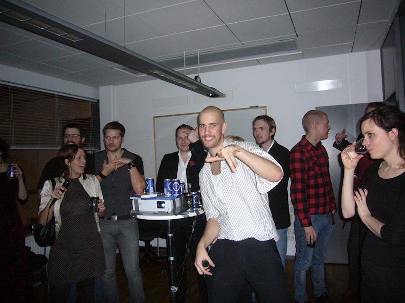 SingStar. (And yeah, that's the CEO giving me the finger in the background)