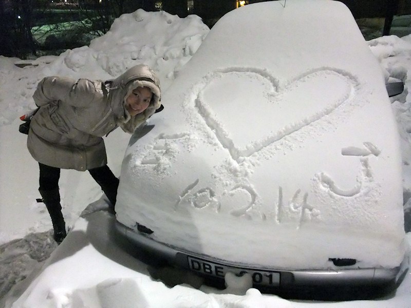 Writing in the snow on a car that apparently has not been used for a couple of weeks or so.