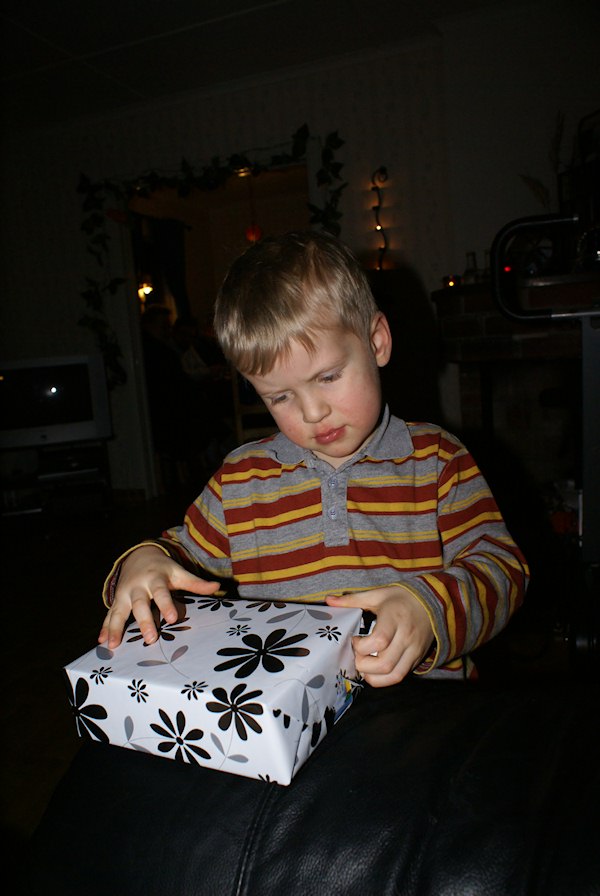 Lukas opening his present.