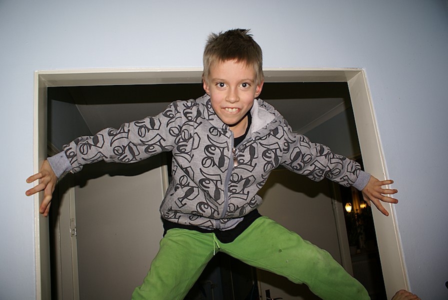 Johannes climbing the walls.