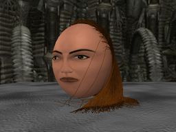 Pixel shader 2.0This demo illustrates a hair simulation using R2VB. The hair consist of a large number of strands. Each strand is a line in a render target, and each node in the strand is represented by a pixel in the render target. The simulation is similar to a typical cloth simulation, except springs only connect in one direction, along the strands. The first node of every strand (the leftmost column of pixels) are locked to the moving balloon head. The rest of the hair will follow it wherever the head is bouncing. Collision is computed against the head and the floor.