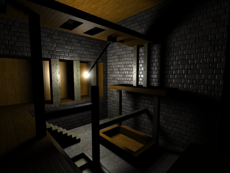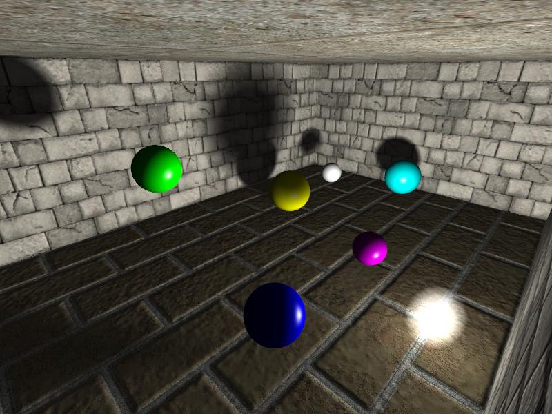GL_ARB_shading_language_100This demo uses a technique that's similar to standard lightmapping, except that this is done in three dimensions. Every point in the room has a light visibility precomputed and stored in a volumetric lightmap. This way you only need a simple texture lookup to determine the amount of light that hits the object. The advantage of this technique is that it's cheap and you get soft shadows for free. The disadvantage is of course that lights must be static. The advantage of the 3D version however is that it unlike 2D lightmaps is also useful for characters and dynamic objects.