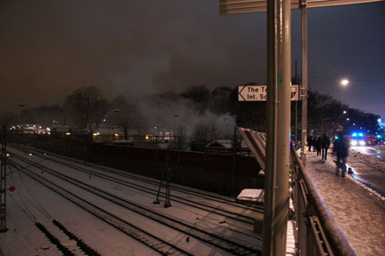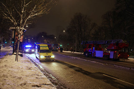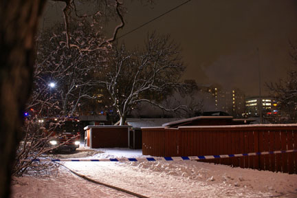 About 200m from here. Tantogården in flames. Or mostly smoke from where I could see it. Several buildings damaged according to reports.