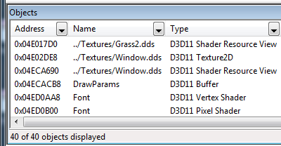 I will include this functionality in Framework4 so that all resource creating functions take a name parameter, which of course will be passed along to the runtime. Speaking of Framework4, after long time with little or no time to work on it, I have lately made some decent progress on bringing it to something reasonably close to an initial release of. I hope to be able to release that in the not too distant future, together with my first DX11 demo as well, which is long overdue.