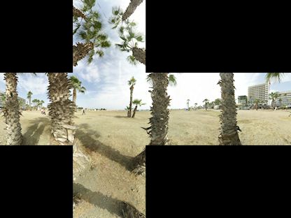 Between some palm trees on the Larnaca beach.